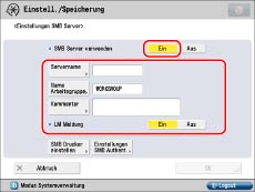 Berühren Sie [Ein] für <SMB-Server verwenden> → Legen Sie die folgenden Optionen fest.