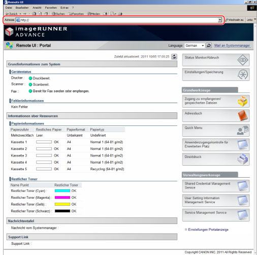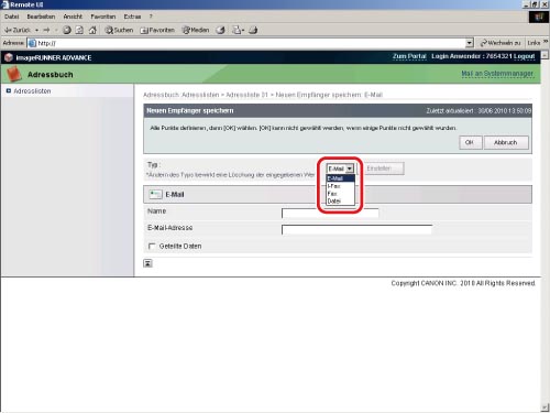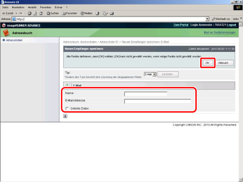E-Mail-Adresse für das imageRUNNER ADVANCE-System