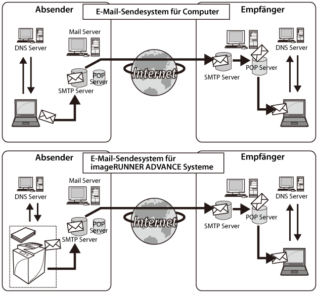 imageRUNNER ADVANCE-Systeme unterstützen keinen E-Mal-Empfang.