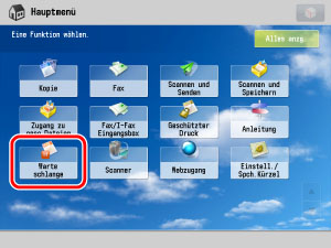 Berühren Sie im Hauptmenü die Taste [Warte schlange].