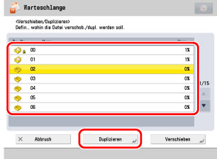 Wählen Sie die Mailbox, in der Sie den Auftrag speichern wollen → Berühren Sie die Taste [Duplizieren].
