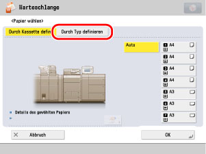 Wählen Sie den Papiertyp zur Verwendung in der Liste aus → Berühren Sie die Taste [OK].