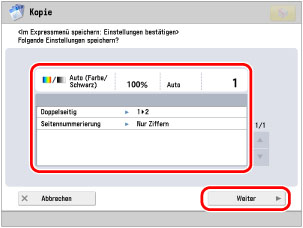 Prüfen Sie die Einstellungen → Berühren Sie die Taste [Weiter].
