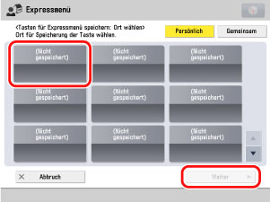 Wählen Sie die Taste, die Sie speichern möchten → Berühren Sie die Taste [Weiter].