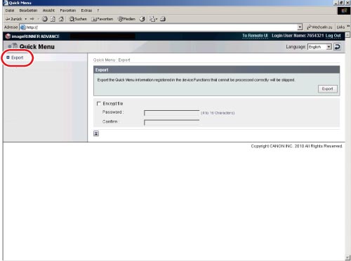 Rufen Sie die Seite "Exportieren" durch Anklicken von [Export] auf.
