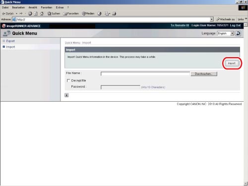 Rufen Sie die Seite zum Importieren durch Anklicken von [Import] auf.