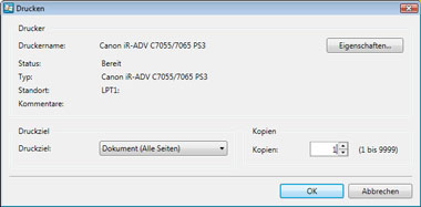 Wählen Sie in [Druckziel] die Option [Dokument (Alle Seiten)] oder [Seiten drucken].