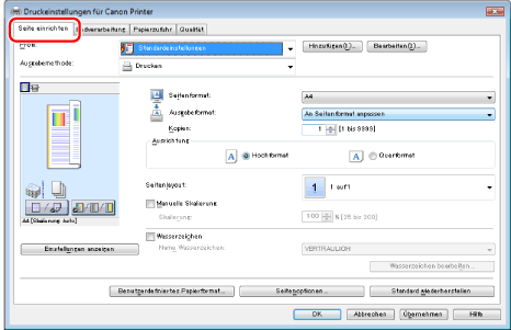 Wählen Sie das Papierformat des in der Anwendung erstellten Dokuments unter [Seitenformat].