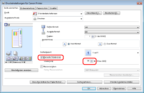 Je nach ausgewähltem Papierformat und Druckermodell lässt sich das Dokument möglicherweise nicht vergrößern.