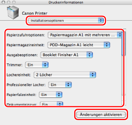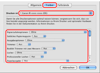 Wählen Sie nur die Optionen, die tatsächlich im Drucker installiert sind.
