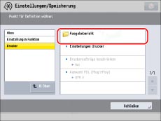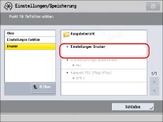 Berühren Sie [Einstellungen Funktion] → [Drucker] → [Einstellungen Drucker].