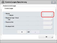 Legen Sie die Anzahl der Drucke durch Berühren der Taste [-] oder [+] fest.