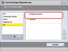 Wenn Sie die Konfigurationsseite nicht drucken möchten, berühren Sie die Taste [Nein].