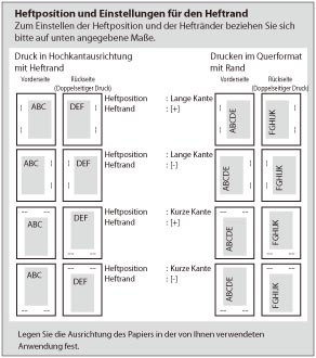 Die Ausrichtung des Bildes auf der Rückseite des Blattes kann durch die Funktion <Heftposition> beim doppelseitigen Drucken geändert werden.