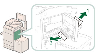 1. Entfernen Sie alles gestaute Papier aus der Außenseite der oberen rechten Abdeckung. |
