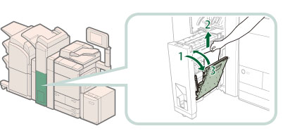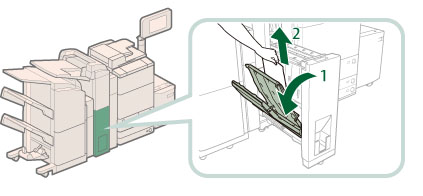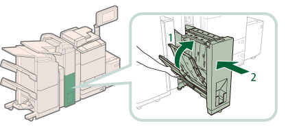 Öffnen Sie die vordere Abdeckung der Zuschiess- und Falzeinheit G1.