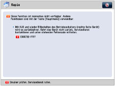 Wenn Sie <Modus Funktionsbeschränkungen> auf dem Display <Serviceruf-Meldung> aktivieren, wird [Modus Funktionsbeschränkungen] in [Einstellungen Verwaltung] (<Einstellungen/Speicherung>) ebenfalls auf 'Ein' gestellt. (Vgl. Abschnitt "Einschränken von Funktionen".)