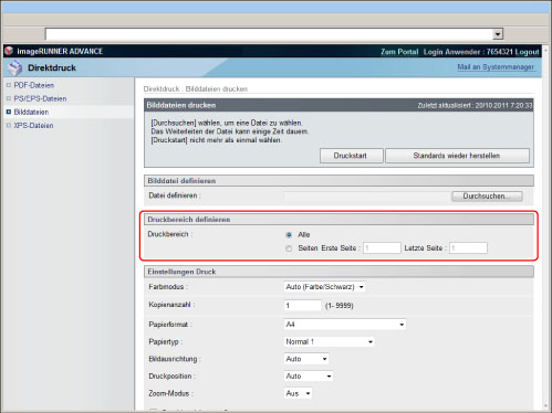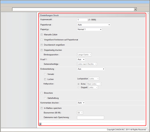 Das PS Printer Kit oder Direct Print Kit (für PDF/XPS) ist zum Drucken einer PDF-Datei erforderlich. Das PS Printer Kit steht nur für den imageRUNNER ADVANCE C7280i/C7270i/C7260i zur Verfügung.