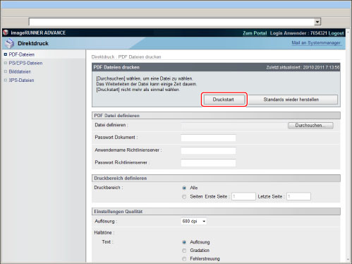 Wenn Sie eine PDF-Datei durch Eingabe ihrer URL drucken, kann der folgende Druckauftrag erst beginnen, nachdem die PDF-Datei heruntergeladen wurde oder der Browser die Verbindung zum Webserver unterbrochen hat.