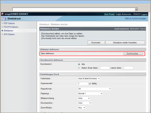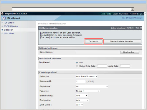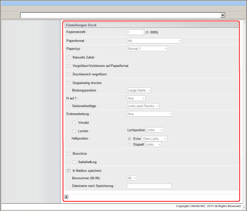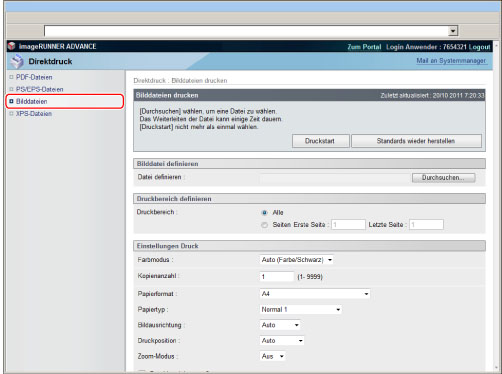 Zum Drucken durch Festlegen einer URL muss [Referenzdruck verw.] in [Remote UI] in [Einstellungen Verwaltung] (<Einstellungen/Speicherung>) aktiviert werden.