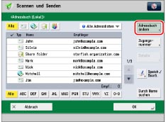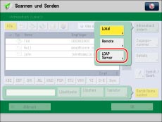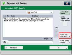 Wenn Sie die Taste [Suche starten] ohne Eingabe von Suchkriterien berührt haben, werden alle auf dem LDAP-Server gespeicherten Adressen angezeigt.