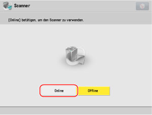Wenn Sie die Taste [Offline] während des Scanvorgangs berühren, wird ein Dialogfeld angezeigt, um zu bestätigen, dass der Scanvorgang angehalten werden soll. Klicken Sie auf [Ja], um den Scanvorgang anzuhalten und den Scanner offline zu schalten.