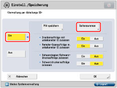 Listen können nur gedrückt werden, wenn sich A3-, A4- oder A4R-Papier (Normalpapier, Recyclingpapier oder farbiges Papier) in einem der Zufuhrmedien befindet, die in der Funktion [Andere] in [Autom. Wahl für Papierkassette Ein/Aus] in [Einstellungen Funktion] (<Einstellungen/Speicherung>) aktiviert worden sind. Wenn jedoch [Papiertyp beachten] für [Kopie] in [Autom. Wahl für Papierkassette Ein/Aus] aktiviert wurde, können Sie nicht mit einem Zufuhrmedium drucken, für das farbiges Papier angegeben wurde. (Vgl. Abschnitt "Aktivieren der automatischen Auswahl der Papierkassette".)