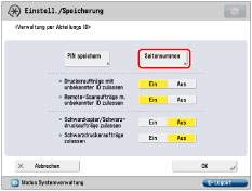Berühren Sie nacheinander die Tasten [Ein] → [Seitensummen].