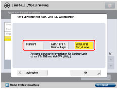 Verwendet die im System eingestellten Informationen für Dateiserver-Authentisierungsinformationen. (Vgl. Abschnitt "Speichern einer Dateiserver-Adresse".) Weitere Einstellungen sind nicht für jeden Anwender erforderlich.