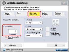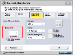 Berühren Sie die Taste [Kopiensatznummerier.] → Geben Sie die erste Ziffer ein.