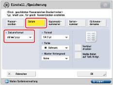 Berühren Sie die Taste [Datum] → Berühren Sie die Auswahlliste <Datumsformat> → Wählen Sie das Format des Datums.