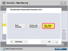 Wenn Sie die Funktion <Scanschutz Dokument> für jeden Auftrag vom Druckertreiber verwenden möchten, klicken Sie im Dialogfeld [Druckeinstellungen] auf die Registerkarte [Endverarbeitung] → [Erweiterte Einstellungen] → Setzen Sie [Funktion mit geschütztem Druck des Geräts] auf [Ein]. Nähere Informationen finden Sie in der Online-Hilfe für den Druckertreiber.