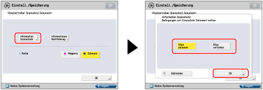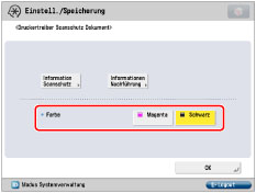 Beachten Sie, dass Canon für Schäden, die durch die Verwendung der Funktion <Scanschutz Dokument> oder das Unvermögen, die Funktion <Scanschutz Dokument> zu verwenden, entstehen, keine Haftung übernimmt.
