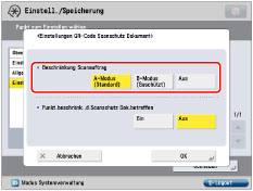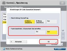 Um die eingebettete QR-Code-Information zu bewahren, sind Funktionen, die die Funktion <Scanschutz Dokument>* beeinflussen, beschränkt.