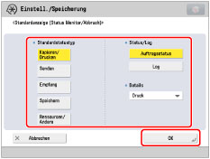 Wenn Sie [Kopieren/Drucken], [Auftragsstatus], [Druck] für <Standardanzeige (Status Monitor/Abbruch)> einstellen: