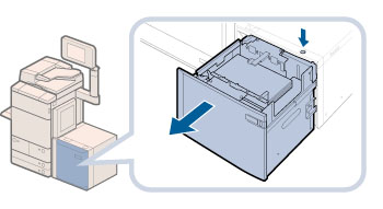 Berühren Sie die Taste zum Öffnen des POD Lite A3-Papiermagazin A1 (1x3.500).