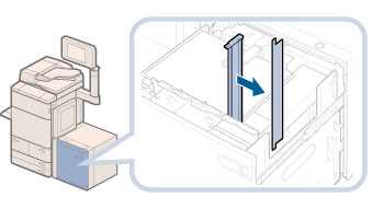 Wenn Sie einen zweiten Stapel Papier zur Feinjustage eingelegt haben, vergessen Sie nicht, ihn herauszunehmen, nachdem Sie die äußere Papierformatplatte justiert haben. Wenn Sie den zweiten Stapel Papier im Papiermagazin lassen, können Fehlfunktionen des Papiermagazins auftreten. Nähere Informationen finden Sie im Schritt 14.