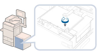 Entfernen Sie die beiden schwarzen Justierschrauben der äußeren Papierformatplatte mit einer Münze, einem Schraubendreher o.ä.