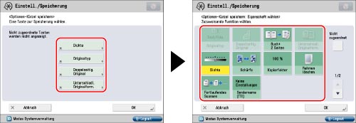 Zur Annullierung der aktuell unter einer Taste gespeicherten Einstellung wählen Sie [Nicht zugeordnet].