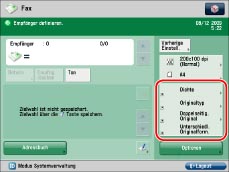 Berühren Sie nacheinander die Tasten [Einstellungen Funktion] → [Senden] → [Einstellungen Fax].