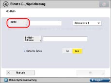 Geben Sie die E-Mail-Adresse ein → Bestätigen Sie durch Berühren der Taste [OK].