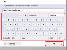 Informationen zur Eingabe von Zeichen finden Sie unter "Zeicheneingabe über das Sensordisplay".