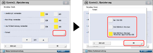 Wählen Sie [Nur Std CSS], [Std CSS+Stil Attribut] oder [Std CSS+Stil Attribut+Externes importiertes CSS].