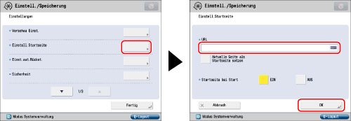 Berühren Sie [Einstell.Startseite] → Berühren Sie das Texteingabefeld <URL>.