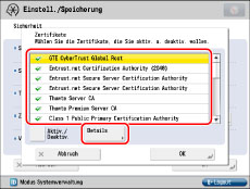Wählen Sie ein Zertifikat aus → Berühren Sie [Aktiv./Deaktiv.].