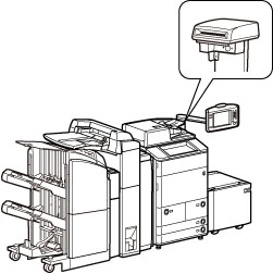 Der Broschüren Finisher L1, Externe Lochereinheit A1 (2-Loch)/Externe Lochereinheit A1 (2/4-Loch)/Externe Lochereinheit A1 (4-Loch), Duplex Scanner + Originaleinzug D-ADF F1, Control Panel B1, A4-Papiermagazin C1(1x3.500) und Kontrollzähler F1 sind angeschlossen.