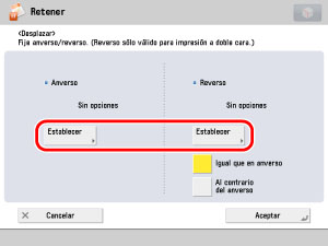 Si se seleccionan varios intervalos de páginas y las opciones de cada intervalo de páginas son diferentes, se mostrará [Variado] para [Tamaño papel de impresión], y [Cada partición] o [Aplicar opciones de cada partición] para otras opciones.