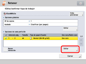 Para cancelar todos los intervalos de páginas, pulse [Borrar selección]. (Cuando no se seleccionan intervalos de páginas, [Borrar selección] cambia a [Selec. todo].)