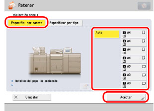 , aparece la información detallada correspondiente al papel seleccionado. |