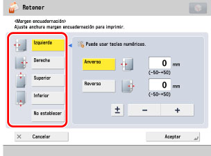 Si introduce un valor distinto de 0, puede cambiar entre anchuras de margen positivas y negativas pulsando [±].